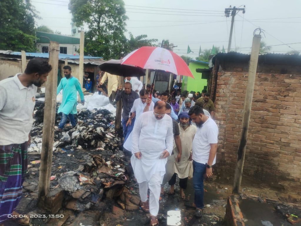 আমিন কলোনীতে অগ্নিকান্ডে ক্ষতিগ্রস্তদের মাঝে আ জ ম নাছির উদ্দীনের অর্থ সহায়তা