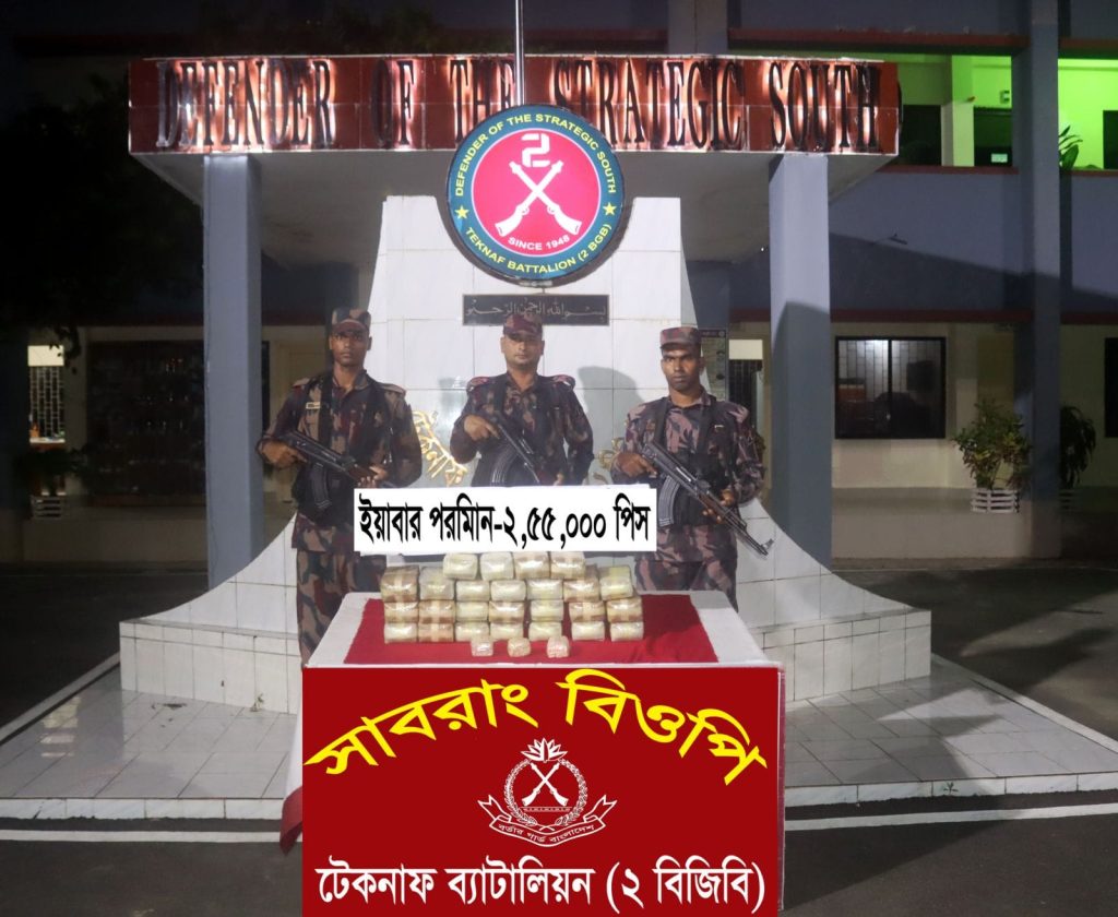 কক্সবাজারের টেকনাফের সাবরাং সীমান্ত এলাকায় অভিযান চালিয়ে ২ লক্ষ ৫৫ হাজার পিস ইয়াবা ট্যাবলেট জব্দ করেছে বর্ডার গার্ড বাংলাদেশ (বিজিবি)। এসময় চোরাকারবারিরা পালিয়ে যাওয়ায় কাউকে আটক করা সম্ভব হয়নি।