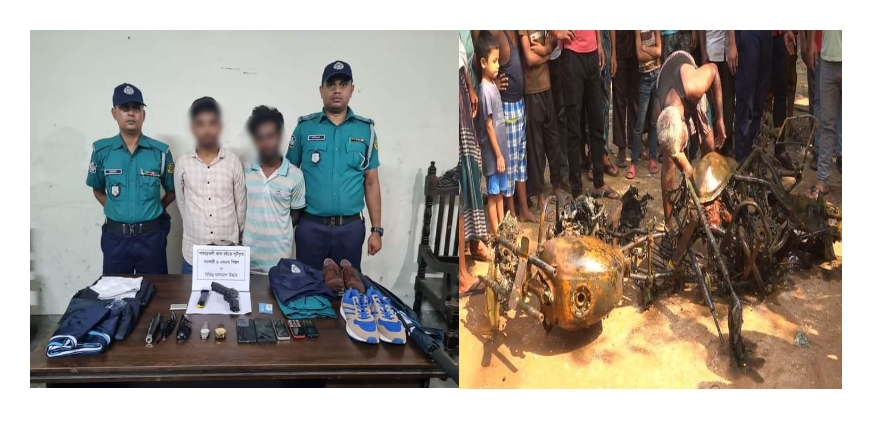 আজ ০৪ নভেম্বর ২০২৪ খ্রি. ভোরে নির্ভরযোগ্য সংবাদের ভিত্তিতে চট্টগ্রাম মহানগরীর পাহাড়তলী থানাধীন সাগরিকা মোড় এলাকায় অভিযান চালিয়ে পাহাড়তলী থানা লুটপাট ও অগ্নিসংযোগের ঘটনায় তদন্তেপাপ্ত আসামি মোঃ মাহাবুর রহমান (২৭)-কে গ্রেফতার করে পাহাড়তলী থানা পুলিশ। গ্রেফতারের পরে তাকে নিবিড় জিজ্ঞাসাবাদে সে জানায় যে, গত ০৫ আগস্ট ২০২৪ খ্রি. পাহাড়তলী থানা অগ্নিসংযোগ, ভাঙচুর ও লুটপাটের ঘটনায় অন্যান্য লোকজনের সঙ্গে সে ও তার সহযোগী ৬/৭ জন জড়িত ছিল। আটককৃত মোঃ মাহাবুর রহমানের প্রদত্ত তথ্যমতে পাহাড়তলী থানাধীন কর্নেল জোন্স রোড়ের শেষ মাথা মোবারক আলীর বসতঘরে আসামি মাহাবুর রহমানের ভাড়াঘরের ভিতর অভিযান পরিচালনা করে পাহাড়তলী থানার পুলিশ সদস্যদের ব্যবহৃত ০১। পুলিশের ১ সেট ইউনিফর্ম (ক্যাপসহ), ০২। পুলিশের ব্যবহৃত ০২টি হাতঘড়ি, ০৩। পুলিশ সদস্যদের ব্যবহৃত ০৫টি বিভিন্ন ব্র্যান্ডের মোবাইল সেট, ০৪। পুলিশের ব্যবহৃত ০১ জোড়া কেডস ও ০১ জোড়া সিভিল স্যু, ০৫। পুলিশ লোগো সম্বলিত ০১টি ছাতা, ০৬। ট্রাউজার ০১টি, ০৭। ইলেকট্রিক কেটলি ০১ টি, ০৮। ট্রিমার ০১টি, ০৯। চশমা ০২ টি, ১০। পুলিশের ব্যবহৃত ০১টি রেইনকোট উদ্ধার করা হয়। ব্যাপক জিজ্ঞাসাবাদে সে জানায় যে, পাহাড়তলী থানার লুটকৃত অস্ত্র ও কয়েকটি মোটরসাইকেল পাহাড়তলী থানাধীন বিটাক বাজার কলেজ রোডসংলগ্ন পুকুরে এবং কয়েকটি সরকারি ওয়াকিটকি সেট ও কয়েকটি হ্যান্ড ক্যাপ অন্যত্র ফেলে দেয়। উক্ত তথ্যের আজ বেলা ১১:৪৫ থেকে ভিত্তিতে বিটাক বাজারসংলগ্ন কলেজ রোড পুকুরে পশ্চিম বিভাগের উপ-পুলিশ কমিশনার জনাব হোসাইন মোহাম্মদ কবির ভুইয়াত নেতৃত্বে পাহাড়তলী থানা পুলিশ দুই ঘন্টাব্যাপী তল্লাশি অভিযান পরিচালনা করে। পুকুরে জাল ফেলে পুলিশ সদস্যদের ব্যবহৃত ০২টি পোড়া মোটরসাইকেল উদ্ধার করা হয়। পরবর্তীতে মোঃ মাহাবুর রহমানকে ব্যাপক জিজ্ঞাসাবাদে সে কয়েকজন সহযোগীর নাম প্রকাশ করে। প্রদত্ত তথ্যের ভিত্তিতে তার সহযোগী নুর নবী (২৫)-কে গ্রেফতারের লক্ষ্যে আকবরশাহ থানাধীন রেলওয়ে হাউজিং সোসাইটিতে অভিযান পরিচালনা করে বিকাল ১৫.৩০ ঘটিকার সময় তাকে গ্রেফতার করা হয়। উভয় আসামিকে মুখোমুখি জিজ্ঞাসাবাদ করলে তারা জানায় যে, আকবরশাহ্ থানাধীন ফারুক চৌধুরীর মাঠের পশ্চিম পাশের ০২ নং লেইনের শেষ মাথায় অবস্থিত ইস্পাহানি পাহাড়ের জঙ্গলের ভিতর মাটি খুঁড়ে একটি পিস্তল চাপা দিয়ে রাখে। পরবর্তীতে পশ্চিম বিভাগের উপ-পুলিশ কমিশনার জনাব হোসাইন মোহাম্মদ কবির ভুইয়ার নেতৃত্বে সহকারি পুলিশ কমিশনার (পাহাড়তলী জোন) জনাব মোঃ মঈনুর রহমান ও থানার অফিসার ইনচার্জ মোঃ বাবুল আজাদ সঙ্গীয় অফিসার-ফোর্সসহ ইস্পাহানি পাহাড়ের জঙ্গলে বিকাল ৫:০০টা থেকে দেড় ঘন্টাব্যাপী 